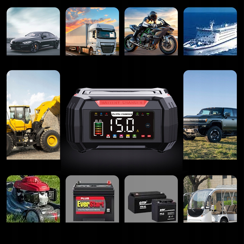 ⚡ Швидше заряджання! Струм зарядки до 15 А для 12 В і до 8 А для 24 В - швидкість заряджання значно перевищує звичайні автоматичні зарядні пристрої 10 А або 8 А.