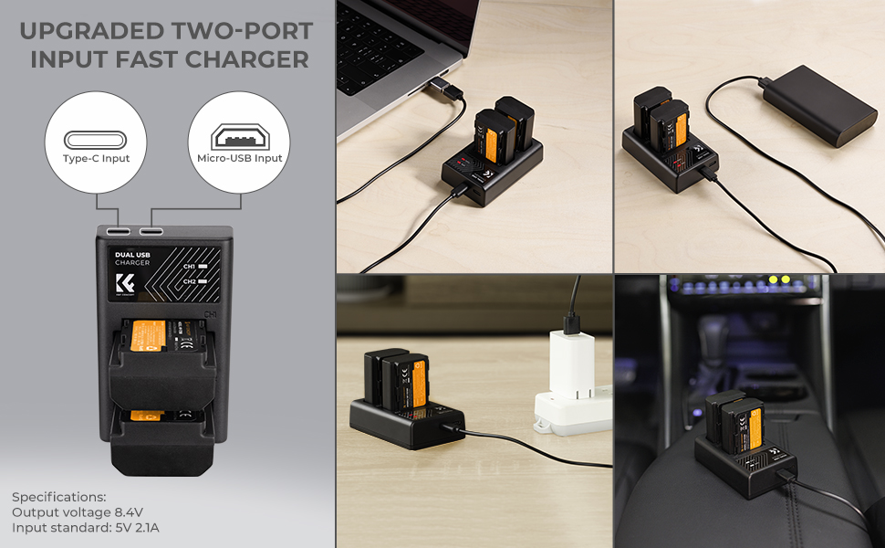 Двоканальний зарядний пристрій дозволяє заряджати дві батареї одночасно, що значно спрощує процес і дозволяє швидше почати роботу b>. p>
