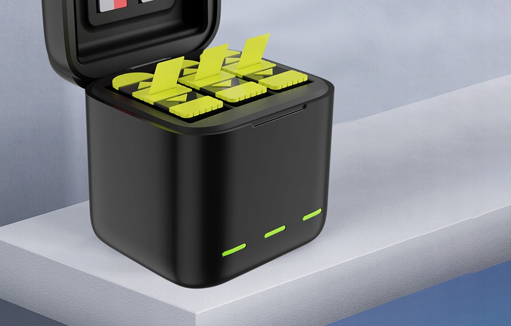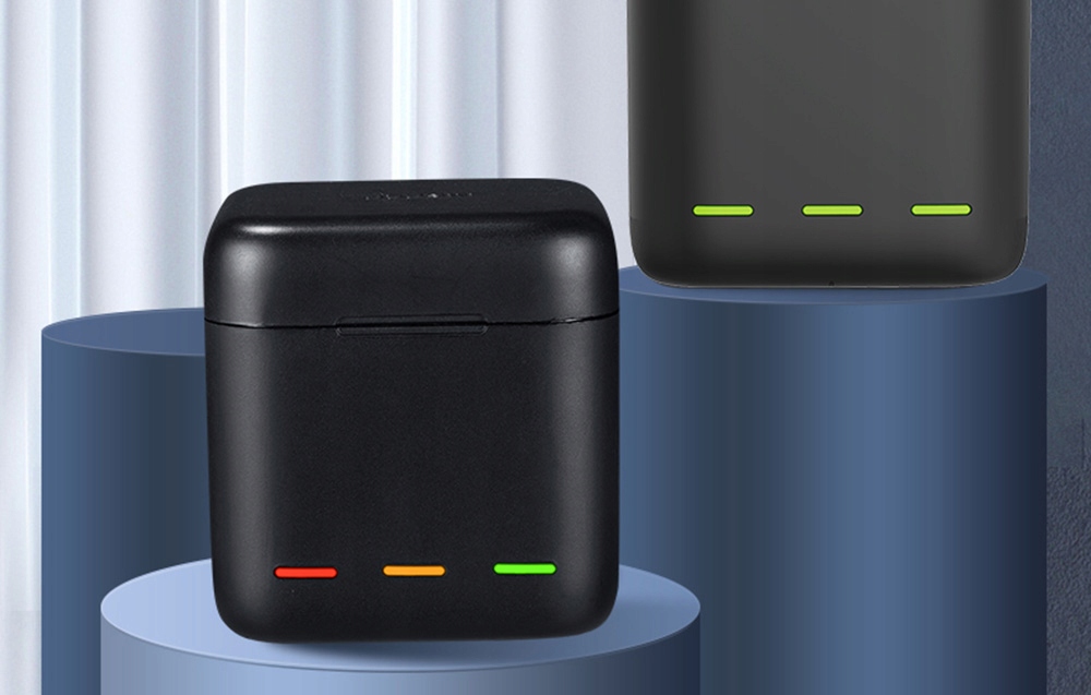 Зручне зберігання та зарядка до 3-х батарей для GoPro Hero 9 і Герой 10 одночасно? Тепер це можливо! Портативний 3-канальний зарядний пристрій Telesin GP-BNC-902-B дивує своєю ефективністю та забезпечує безпечне використання. Це дозволяє зарядити всі 3 батареї всього за 2,5 години! Завдяки вдосконаленій конструкції він простий і зручний у використанні, і в той же час зручний у транспортуванні. Інформацію про стан зарядки нададуть 3 кольорові світлові індикатори. У набір також входить 3 батареї для GoPro Hero 9 / Hero 10 фірми Telesin.