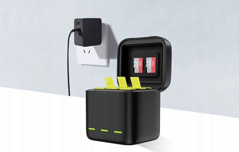 Шукаєте спосіб зручного та безпечного зберігання аксесуарів для камери GoPro? Зарядний пристрій Telesin неодмінно стане в нагоді! Виріб розроблено таким чином, що в ньому можна одночасно встановити до 3 батарей. Також в ньому можна зберігати 2 карти пам'яті. Цей практичний пристрій допоможе вам бути організованим і дозволить завжди мати під рукою корисні аксесуари!