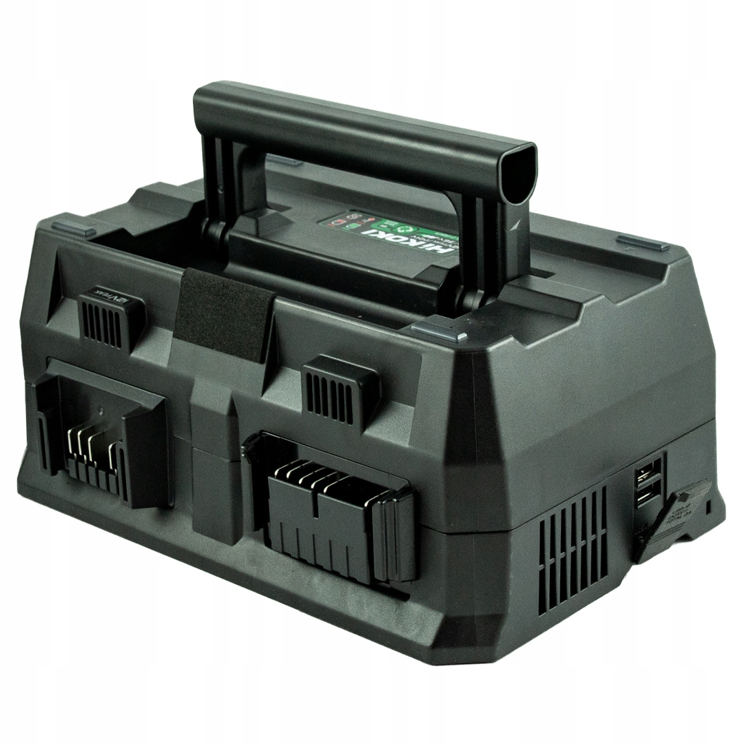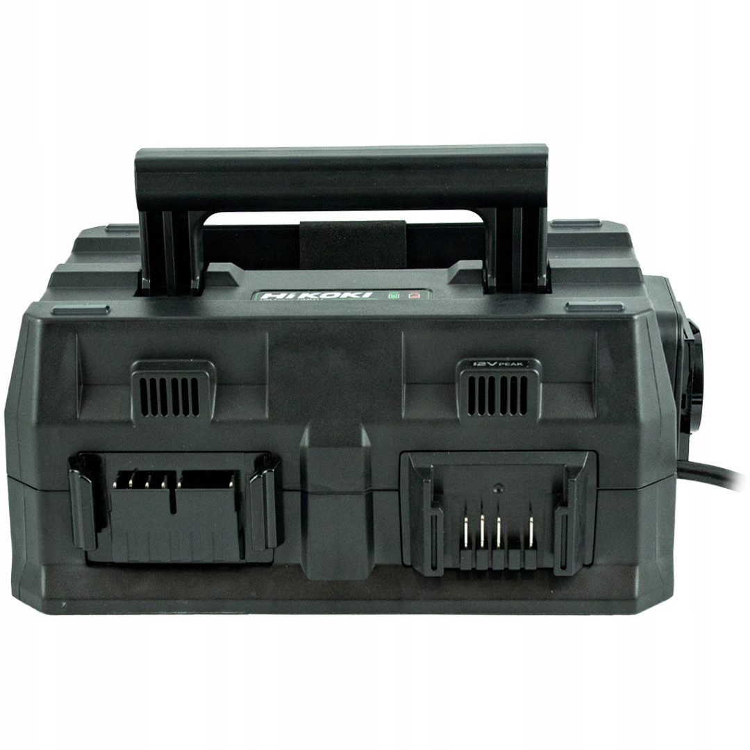 Зарядний пристрій багатовольтний 10.8/12-18V Li-Ion HiKOKI UC18YTSL W1Z оснащений 4 порти зарядки акумулятора. Має 2 порти для зарядки акумуляторів 10,8/12 В і 2 для акумуляторів 14,4-18 В. Завдяки використанню 2 типів портів ми можемо скоротити кількість зарядних пристроїв на робочому місці до мінімуму. Важливою перевагою представленого зарядного пристрою є вбудована розетка (230V / 8Ah), до якого ми можемо підключити традиційний кабельний пристрій. Це відмінне рішення на будівельних майданчиках, де немає вільних розеток. Додатково модель UC18YTSL W1Z має 2 порти USB ми можемо заряджати мобільні пристрої. Зарядний пристрій має 2 режими зарядки, нормальний заряд акумуляторів відповідно до нумерації портів від 1 до 4, де 1 означає порт із найвищим пріоритетом. Мультирежим викликає все батареї заряджаються одночасно, час зарядки є сумою часів окремі батареї, встановлені в портах. Для легкого і Зарядний пристрій складається для зручного перенесення ручка.