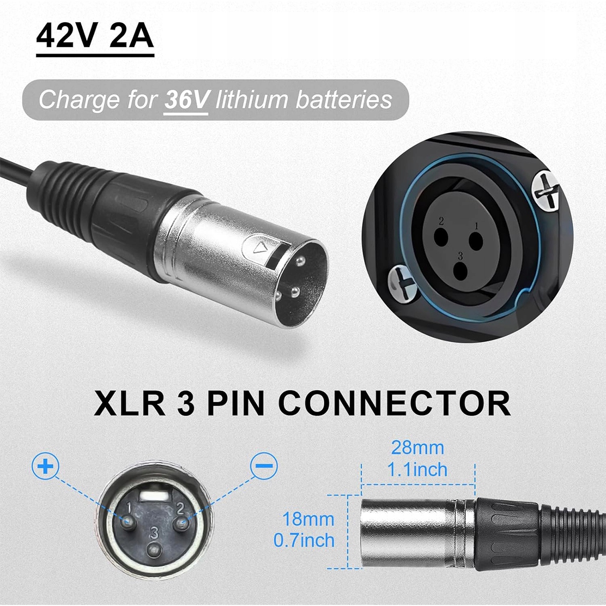 42В 2A електричний велосипедний зарядний пристрій, електричний скутер, електричне інвалідне крісло, універсальний зарядний пристрій для 36-літієвого акумулятора, 3-контактного роз'єму XLR