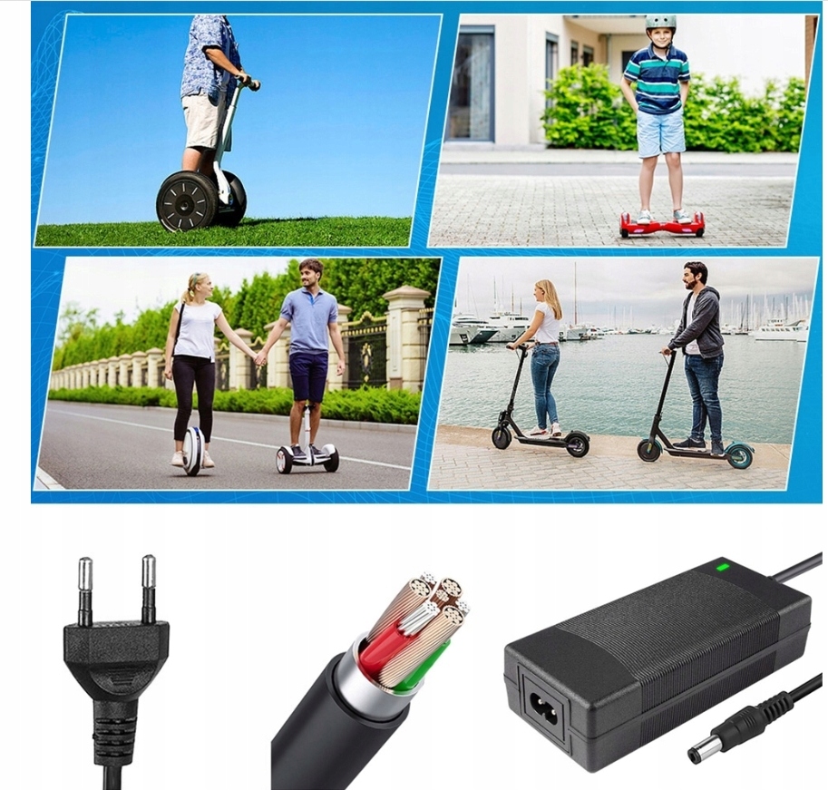 - Вихід: DC 42V2A (Цей зарядний пристрій для скутера підходить для 36 літій-іонних акумуляторів V).