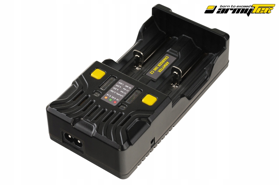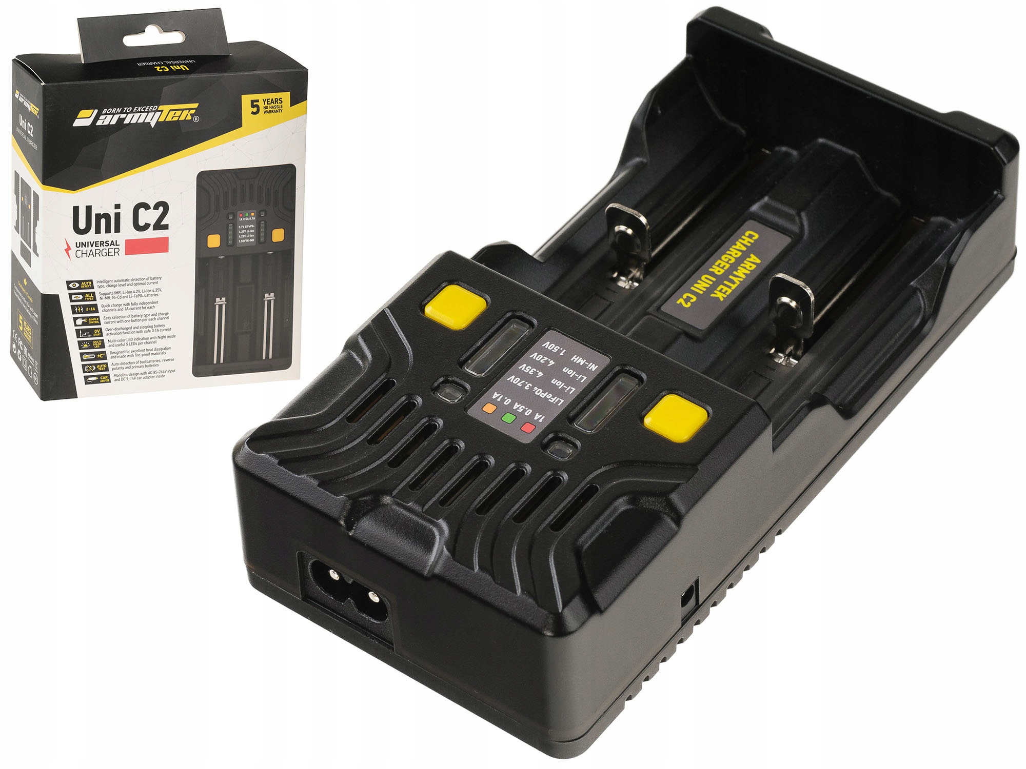 UNI C2 — це вдосконалений стаціонарний/автомобільний зарядний пристрій із вбудованим блоком живлення. Він був розроблений для заряджання різних типів батарей, які використовуються в ліхтариках, фотоапаратах, відеокамерах, іграшках, пультах дистанційного керування та інших побутових пристроях. Підтримує більшість типів елементів: AA, AAA, AAAA, C, D, 10440, 14500, 16340, 18350, RCR123A, 18650, 26650, 32650. Станція підтримує Li-Ion 4.2 V, LIi-Ion 4-елементні акумулятори, 35 V, IMR, Ni-Mh, Ni-Cd Li-FePO4. Завдяки висувним напрямним з пружинною системою і формі гнізда всі типи акумуляторів стійко лежать в зарядному пристрої (заблоковані). Інтелектуальні функції гарантують зручну роботу, високу ефективність і безпеку.