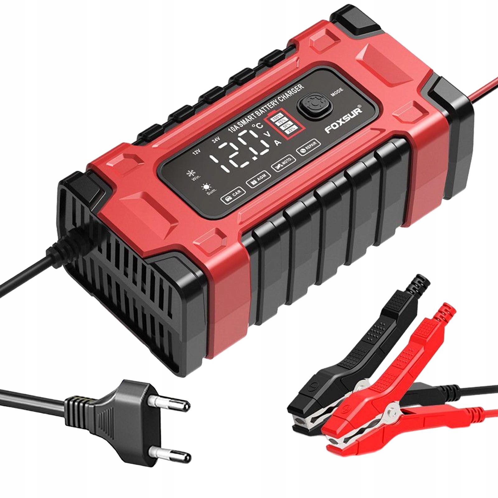 [Широка сумісність]: 12 В та 24 В зарядного пристрою зарядки акумулятора, придатна для пасажирських автомобілів, вантажівок, мотоциклів, кемперів, позашляховиків, човнів, трав’яних косирів тощо.