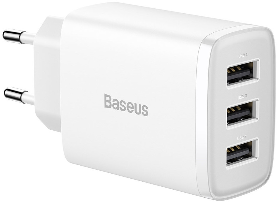 Швидкий настінний зарядний пристрій Baseus 17 Вт, 3x USB, 3,4 A, білий