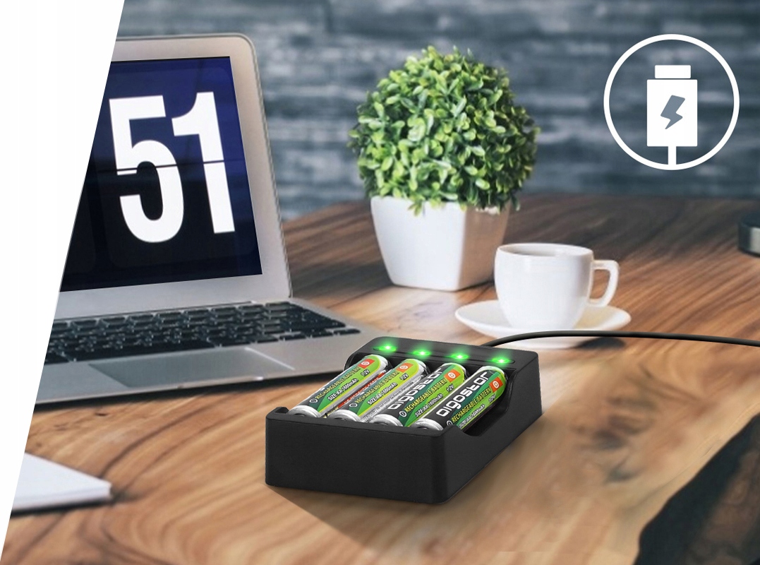 - AA/R6: ємність 13000 мАг - час заряджання 7,8 год