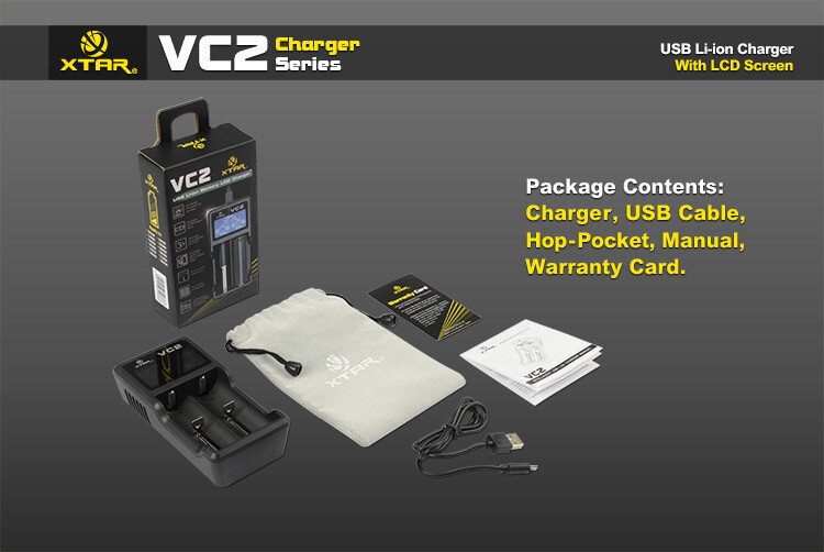 Зарядний пристрій Xtar VC2 постачається з кабелем мікро-USB і кришкою для захисту зарядного пристрою під час транспортування. У комплект не входить блок живлення. Для живлення зарядного пристрою вам потрібен будь-який зарядний пристрій із мікро-USB-кабелем, наприклад, від телефону, або USB-роз’єму, або комп’ютера з вільним USB-портом. Рекомендована потужність зарядного пристрою становить 2 А (2000 мА).