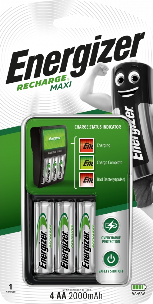 - Захист від неправильної полярності забезпечується функцією, яка запобігає заряджанню неправильно вставлених батарей.