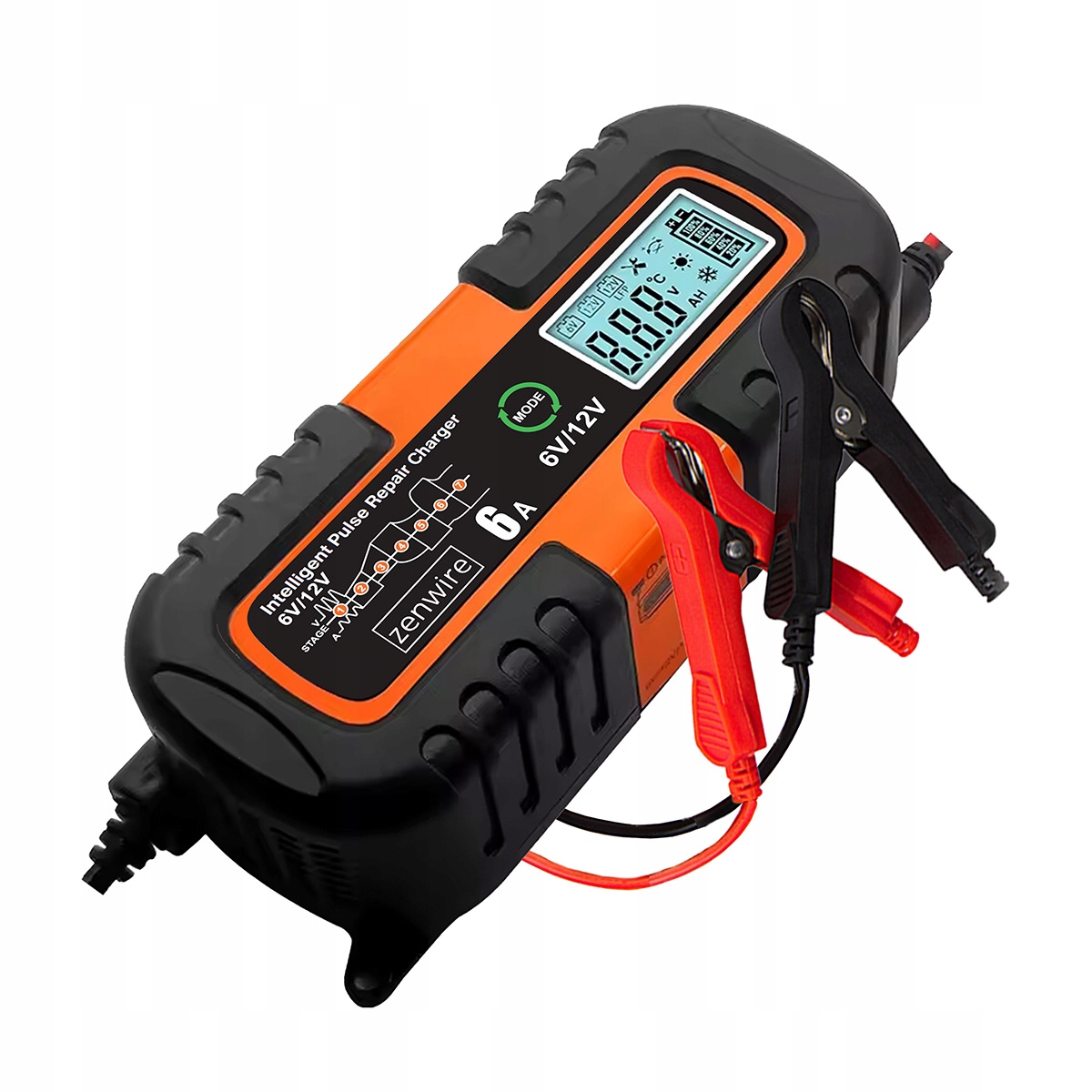 Зарядний пристрій 6 В/12 В із РК-дисплеєм, функцією ремонту, мікропроцесорним керуванням і літнім і зимовим режимами - Zenwire JMD-6S
