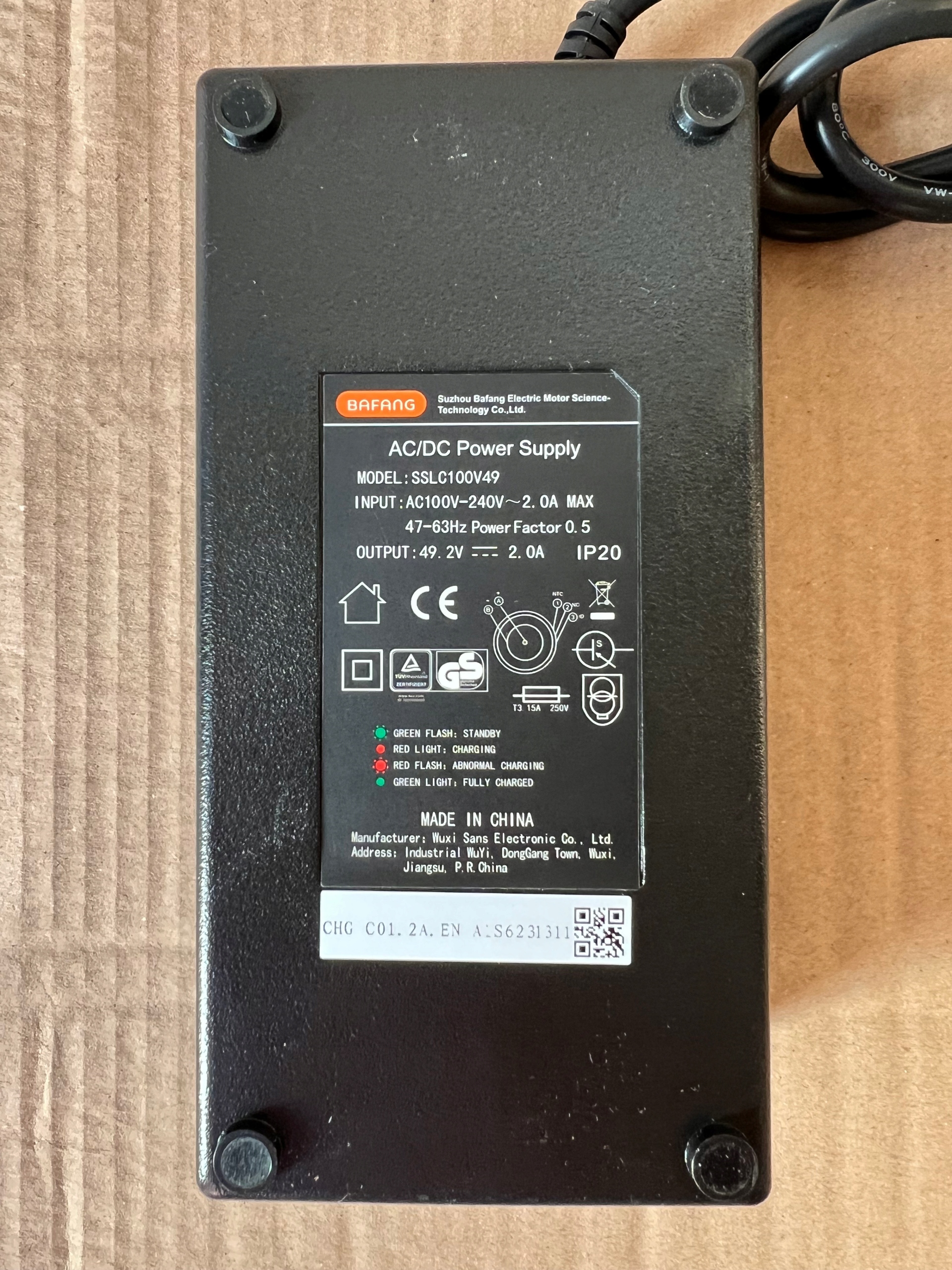 - Підходить для заряджання всіх акумуляторів BAFANG 43 В!