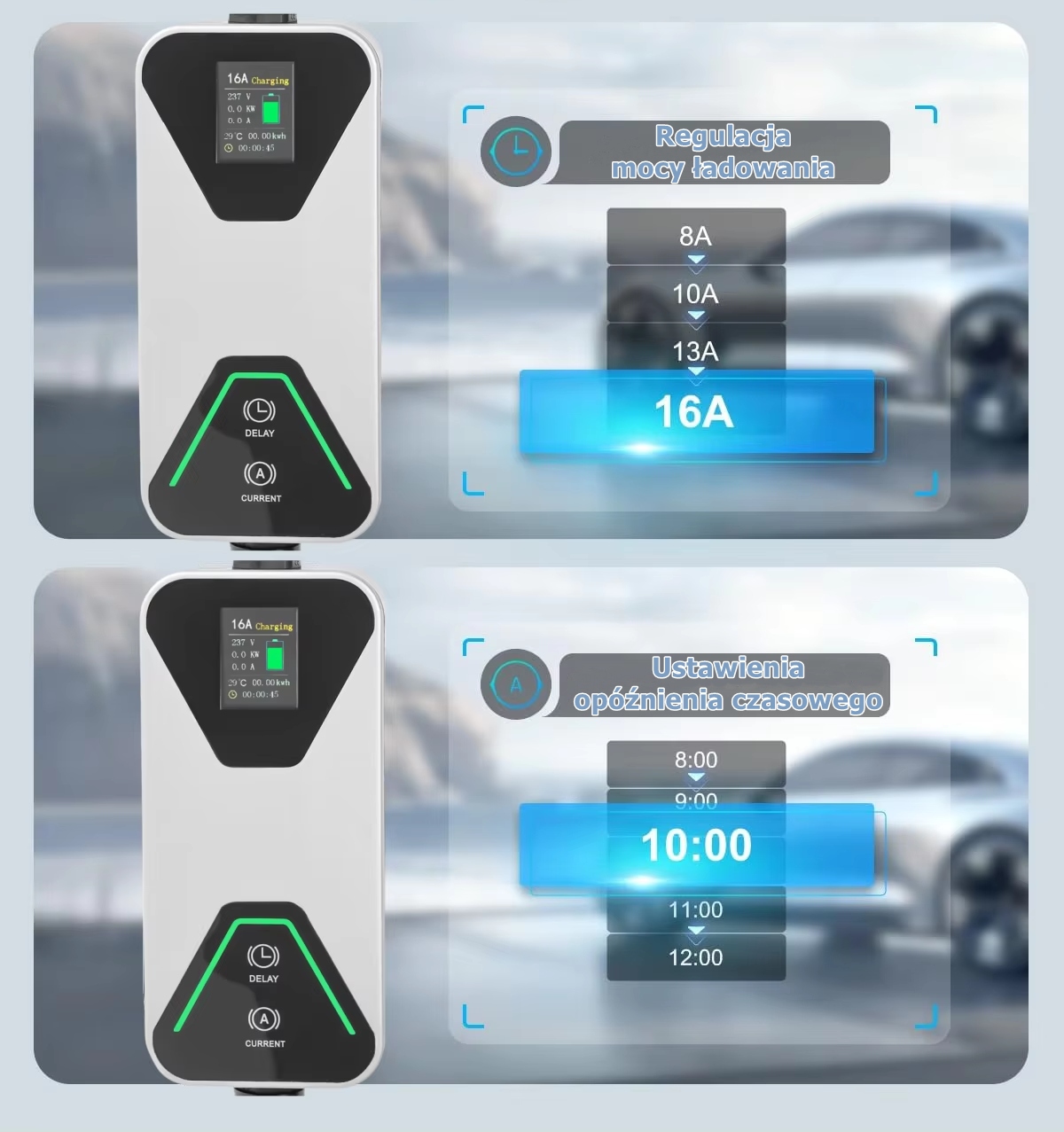 Можливі потужності заряджання (у додатку 8A-16A кожен 1A, від рівня зарядного пристрою 8,10,13,16A) - зарядний пристрій має пам'ять і запам'ятовує останні налаштування потужності, вам не потрібно встановлювати його щоразу.