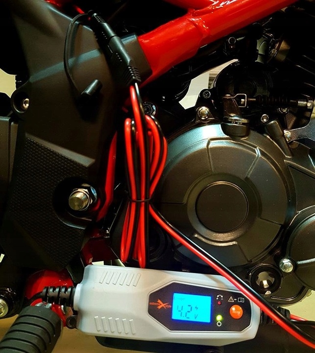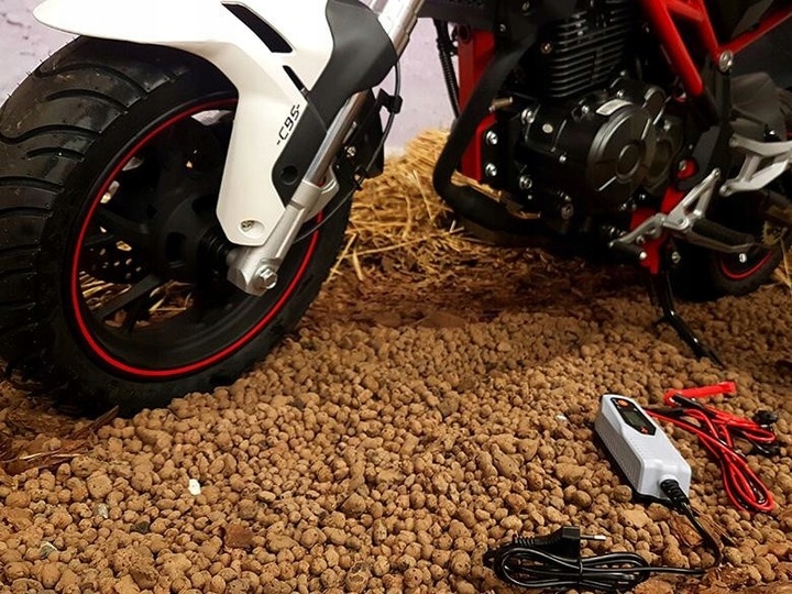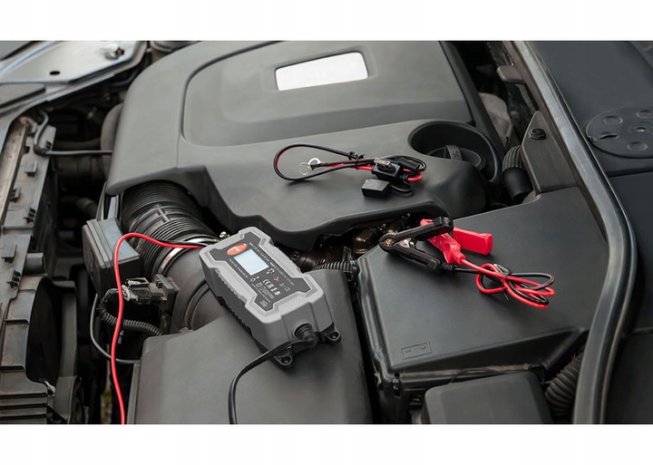 Зарядник повністю автоматичний, керований мікропроцесором. Після повної зарядки вона автоматично вимикається, переходячи в режим моніторингу напруги - 100% безпечний для кожного акумулятора. Навантажувач оснащений дискуссонним кабелем з швидким роз'ємом SAE та набором додаткових роз'ємів (крокодил та очні термінали).