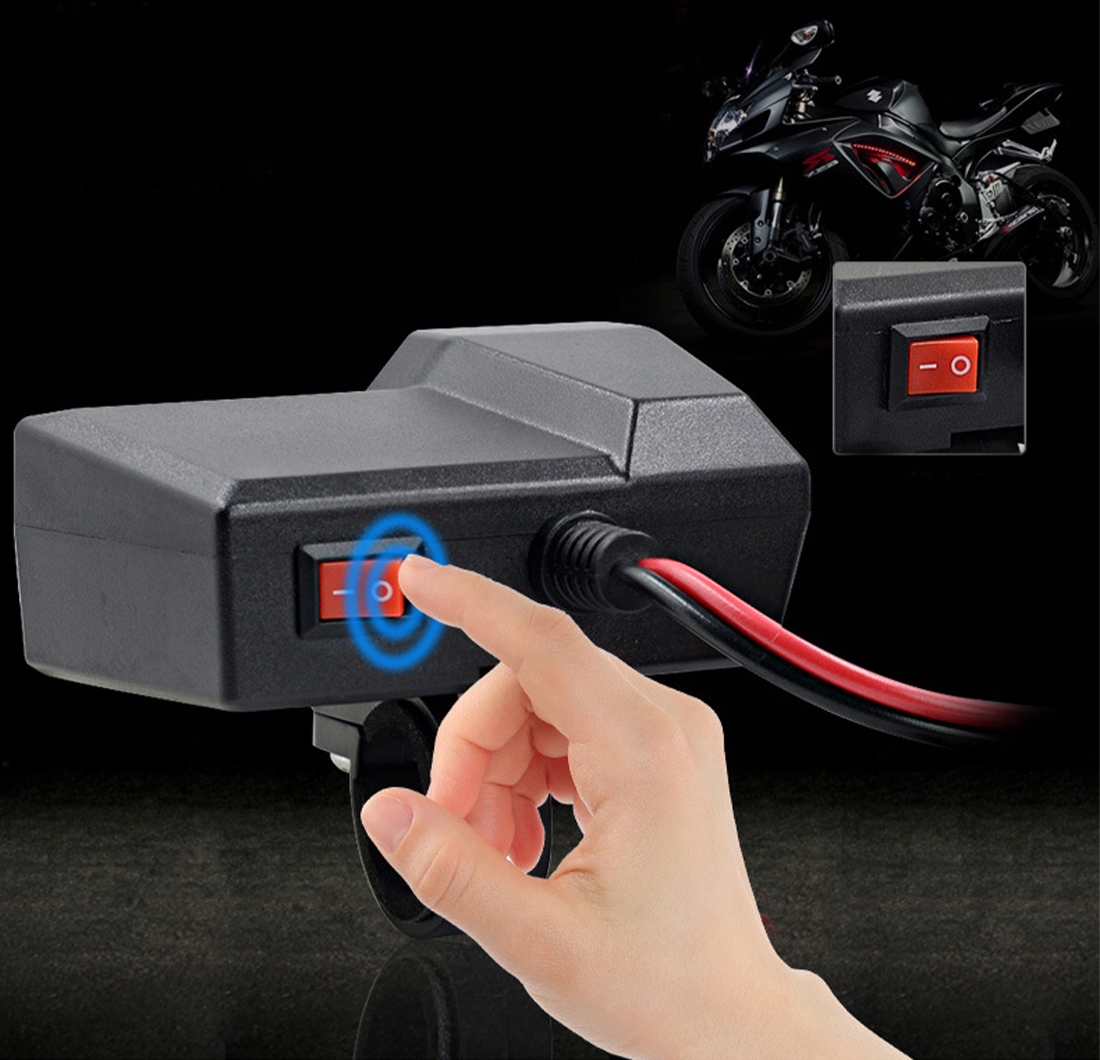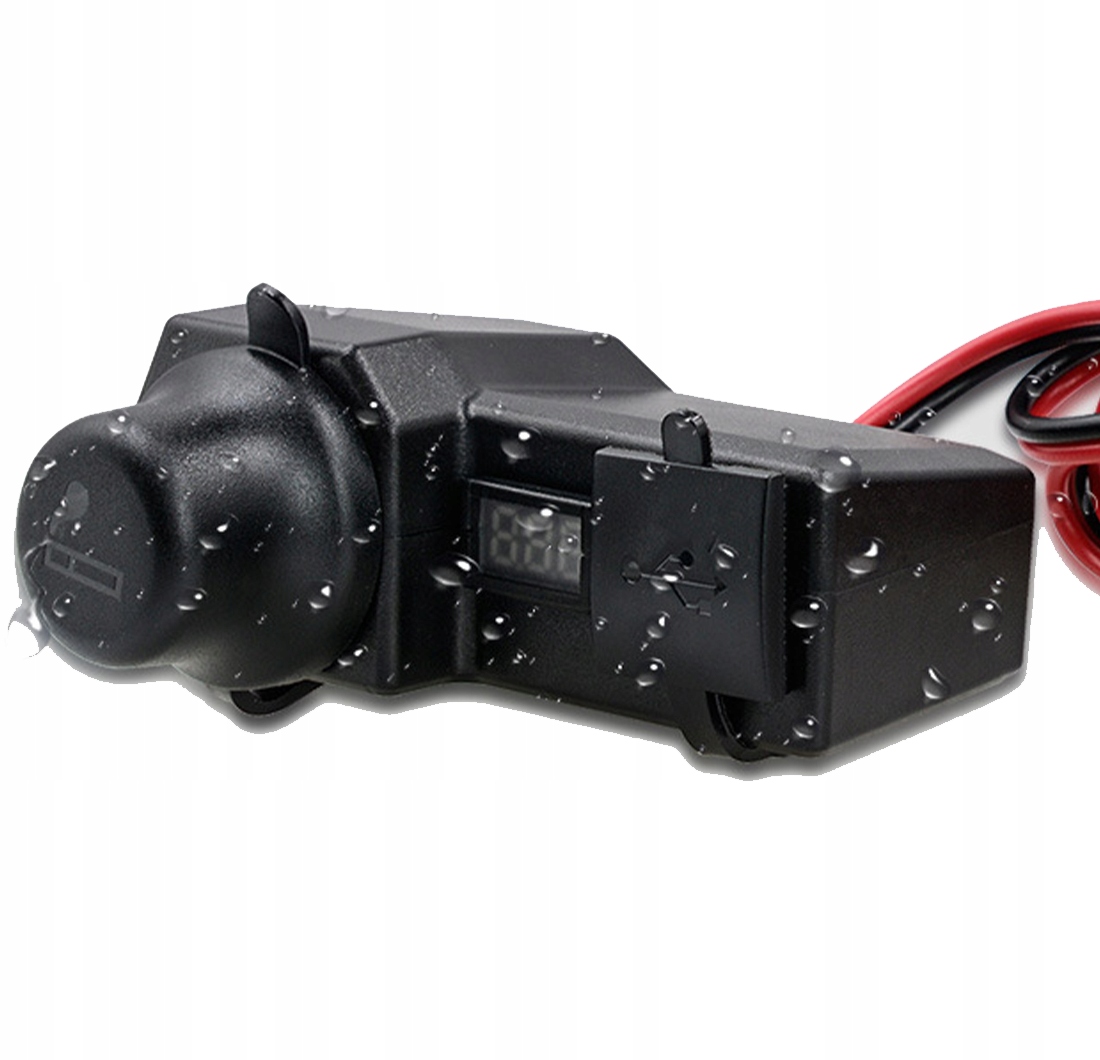 - Зарядний пристрій для мотоцикла з гніздом прикурювача та 2xUSB