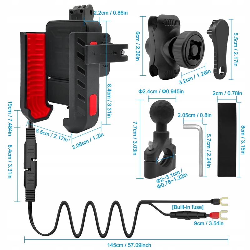 - 1x тримач із USB-C, USB-A для заряджання та перемикачем