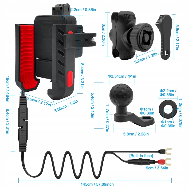 Тримач знаходиться на кульовому шарнірі, тому ви можете вільно його обертати, переміщати та з’єднувати з іншими аксесуарами в межах 1 дюйма.