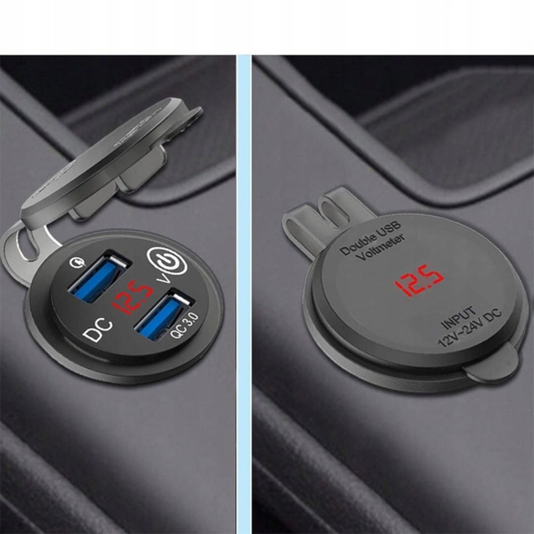 Зарядний пристрій для мотоцикла Джерело живлення USB-роз’єм x2 QC3.0 Вольтметр