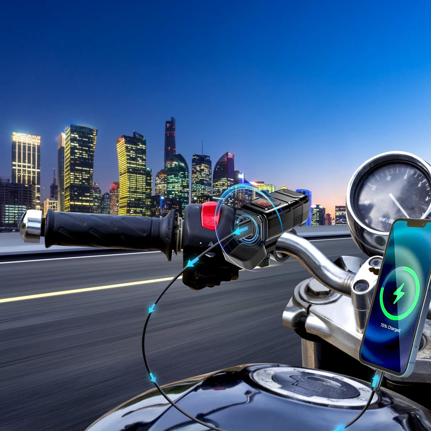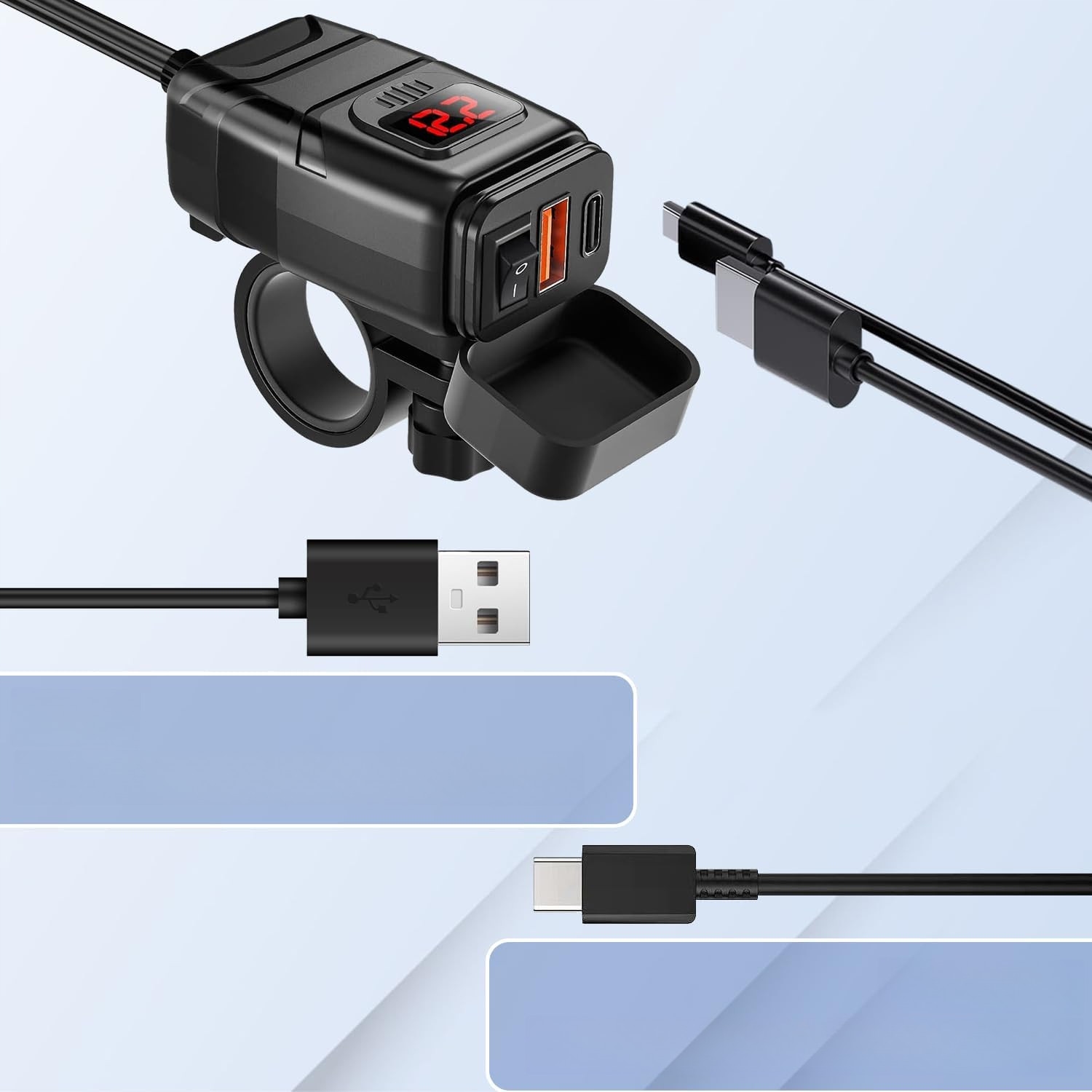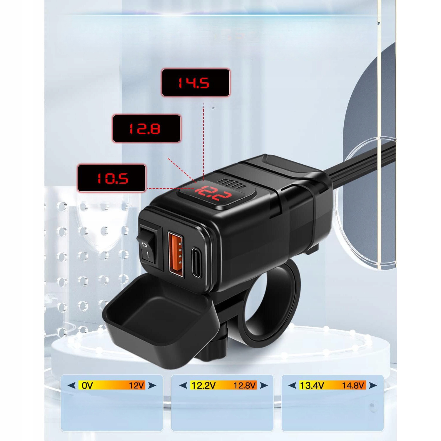 ✨ Зарядний пристрій для мотоцикла PD+QC3.0 30 Вт USB-C+A зі світлодіодним вольтметром. Водонепроникний, 12-24 В, швидка зарядка та безпечне встановлення.