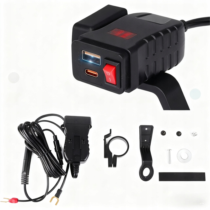 ЗАРЯДНИЙ ПРИСТРІЙ ДЛЯ МОТОЦИКЛА ЗІ СВІТОДІОДНИМ ВОЛЬТМЕТРОМ QC3.0 USB ТА USB-C