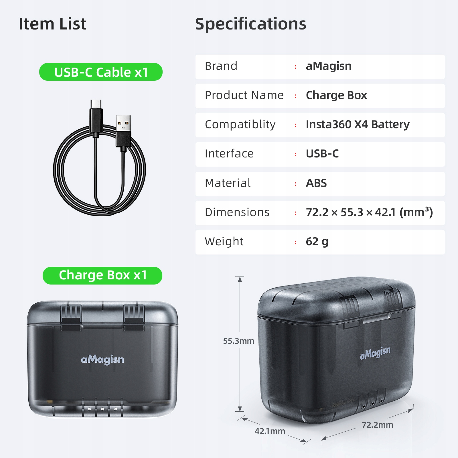 ЗАРЯДНИЙ ПРИСТРІЙ ДЛЯ ПОРТАТИВНОЇ ЗАРЯДНОЇ СТАНЦІЇ INSTA360 X4