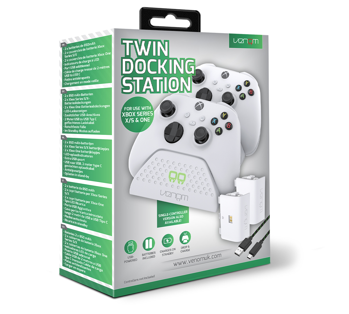 Заряджайте свій контролер і насолоджуйтесь довгими годинами ігор із док-станціями VENOM.