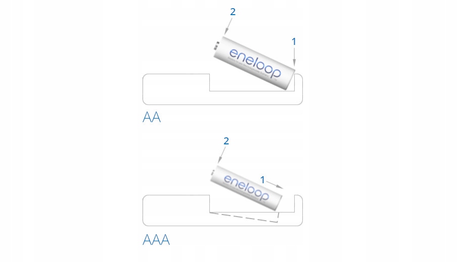 Зарядний пристрій заряджатиме як батареї AA/R6, так і менші батареї AAA/R03. Можливе завантаження в різних конфігураціях.