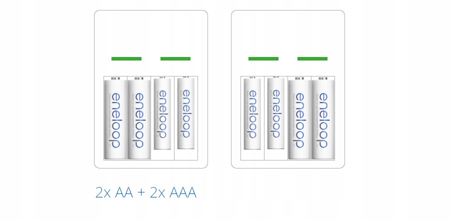 Для вашої зручності зарядний пристрій продається в комплекті з популярними акумуляторами Panasonic Eneloop R6 / AA 2000mAh Ni-MH BK- 3MCDE. Батареї можна заряджати та використовувати кілька разів, а серія Eneloop дозволяє це робити до 2100 разів! Що ще важливіше, вони зберігають до 70% своєї енергії навіть через 10 років, тому вони можуть лежати невикористаними в ящику, не побоюючись значної втрати зарядженої енергії. Вони також не мають ефекту пам'яті - їх можна зарядити в будь-який момент, не турбуючись про втрату ємності акумулятора. Eneloop такі ж прості у використанні, як і батареї, екологічні та економічні, як акумуляторні батареї.