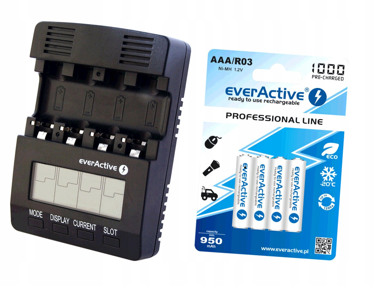 Мікропроцесорний зарядний пристрій EverActive NC-3000. Цей зарядний пристрій від відомого та шанованого бренду everActive має найвищу якість. Це новинка на польському ринку, яка використовує найсучасніші технології. Має 4 повністю незалежні канали зарядки. Ви можете заряджати від 1 до 4 елементів будь-якої ємності та розміру (R03 AAA/R6 AA та 1-2 шт. C R14 / D R20) у будь-якій конфігурації.