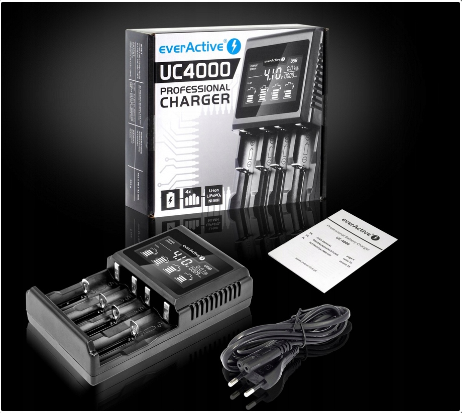 EverActive UC 4000 — це нова професійна якість універсальних зарядних пристроїв з одночасною підтримкою Ni-MH та Li-ion акумуляторів. Наша пропозиція містить дуже точні програми заряджання, ідеально адаптовані до кожного типу акумулятора.