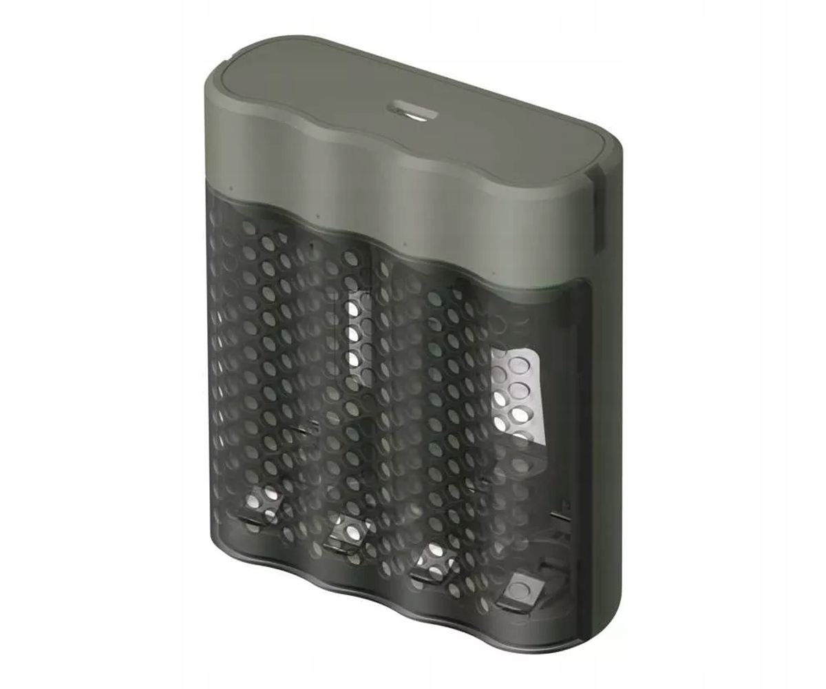 - 4 зарядні слоти зі світлодіодним індикатором, що вказує на стан заряджання, несправність, вставлені лужні батареї або несправні батареї