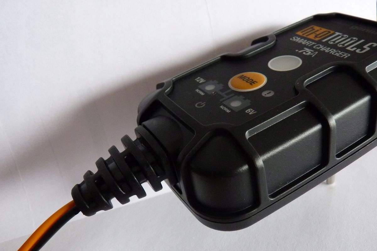 Чудовий випрямляч для акумуляторів 6 В або 12 В. Струм зарядки до 0,75А. Універсальне використання: мотоцикли, скутери, квадроцикли, електричні скутери, човни, газонокосарки.
