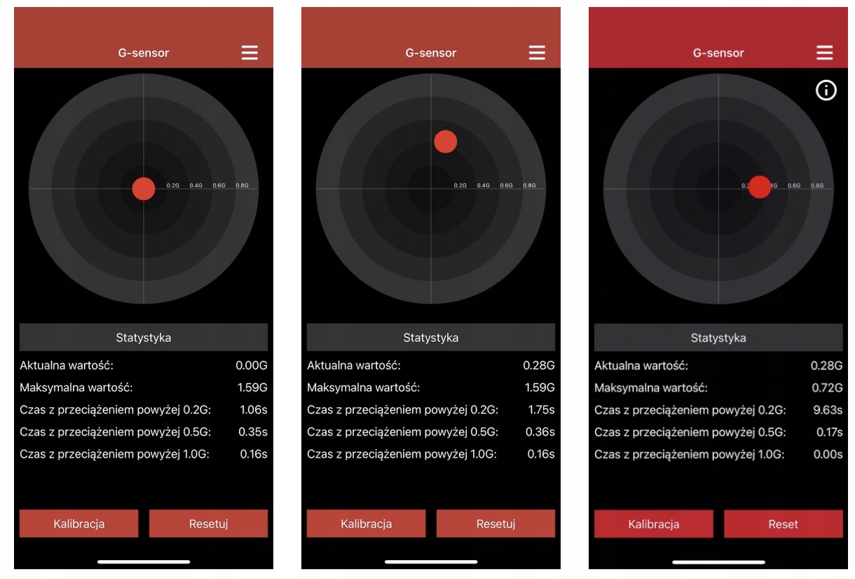 Функція, яка дозволяє перевіряти перевантаження в автомобілі за годинником. Ця функція призначена для того, щоб користувач міг зчитувати поточні перевантаження під час руху. Функція представляє поточне та максимальне значення перевантаження.