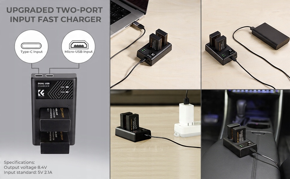 На щастя, завдяки компактним розмірам зарядного пристрою K&F ви можете взяти з собою ваш пристрій у будь-якому місці, не турбуючись про те, що в якийсь момент ваші фотографічні плани будуть зірвані через розряджені батареї!