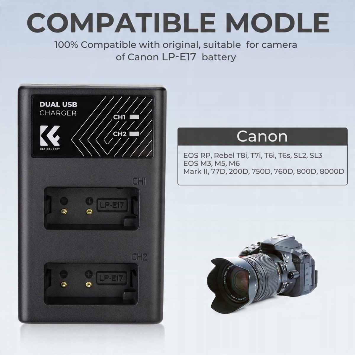 Зарядний пристрій K&F - це зарядний пристрій для акумуляторів LP-E17, який неодмінно збереже ваші фото чи відео, коли немає традиційної зарядки розетка.