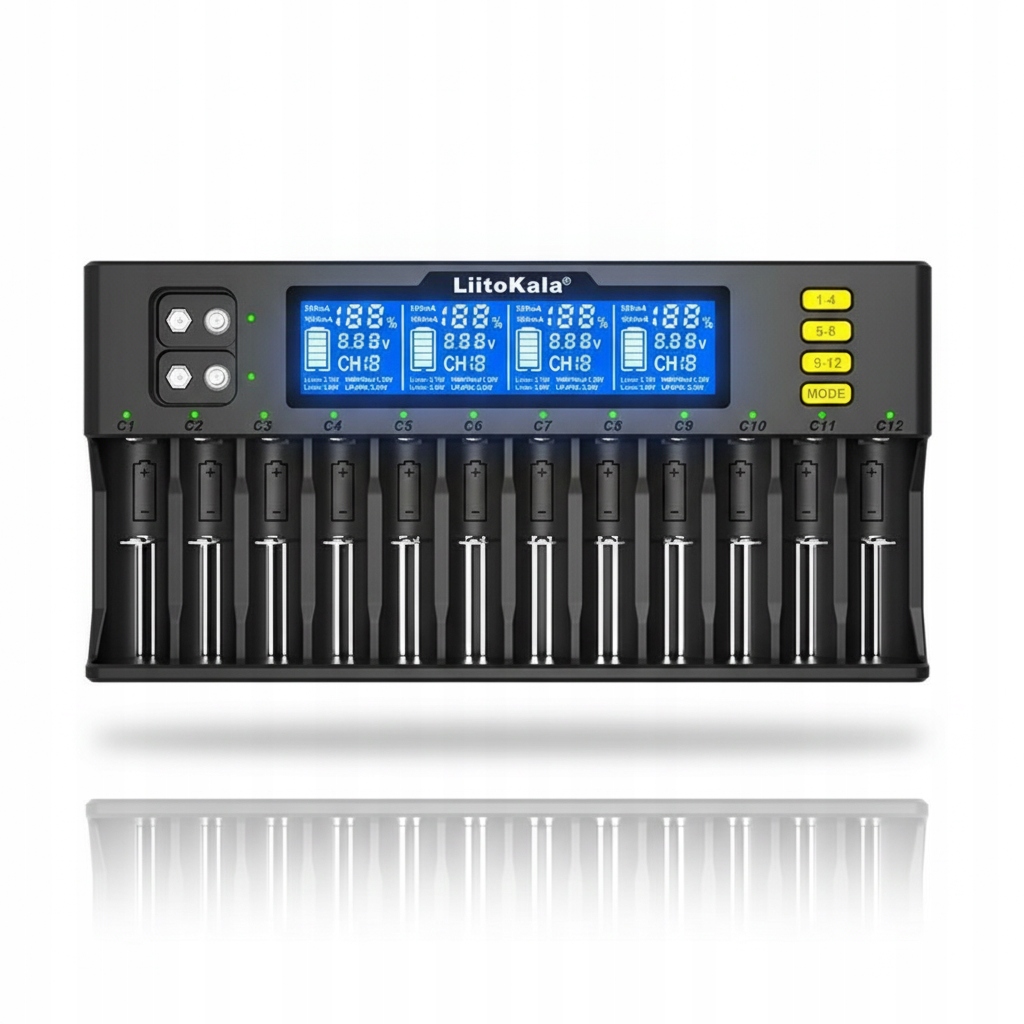 - Для професіоналів (майстерня, сервіс, офіс) У професійному середовищі ефективність має значення. Lii-S12 дозволяє масово заряджати акумулятори для електроінструментів, вимірювального обладнання, бездротових мікрофонів (9V) і діагностичних пристроїв. РК-дисплей дозволяє швидко перевірити стан елементів, а 12 слотів гарантують, що ви ніколи не розрядитеся під час роботи.