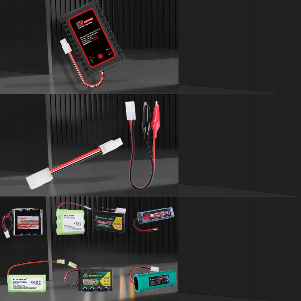 【Простий у використанні】Зарядний пристрій оснащено стандартним роз’ємом Tamiya та стандартним зарядним кабелем із роз’ємом Tamiya на Mini Tamiya, що дозволяє легко заряджати акумулятори NiMH/NiCD. Просто підключіть шнур живлення, зарядний пристрій і акумулятор. Пристрій компактний і елегантний, його легко носити з собою та підходить для подорожей.