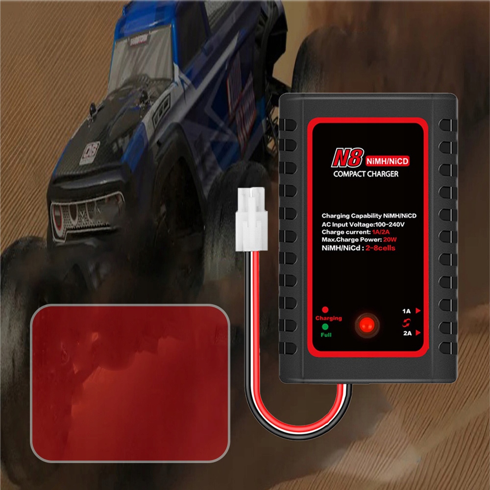 【Розумний зарядний пристрій NiMH】Цей зарядний пристрій N8 NiMH спеціально розроблено для акумуляторів NiMH/NiCd на 2–8 секунд (2,4–9,6 В) для дронів/автомобілів на радіоуправлінні/катерів/пневматичної зброї. Інтелектуальна зарядка з функцією захисту від перезаряду, безпечна та ефективна.