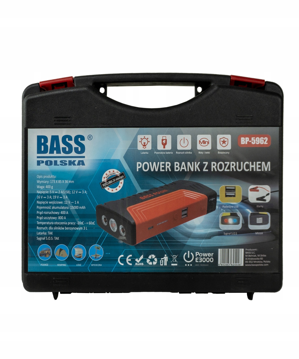 Портативний павербанк Bass Polska незамінний у подорожі, подорожі, кемпінгу тощо. Bass Polska powerbank оснащено: