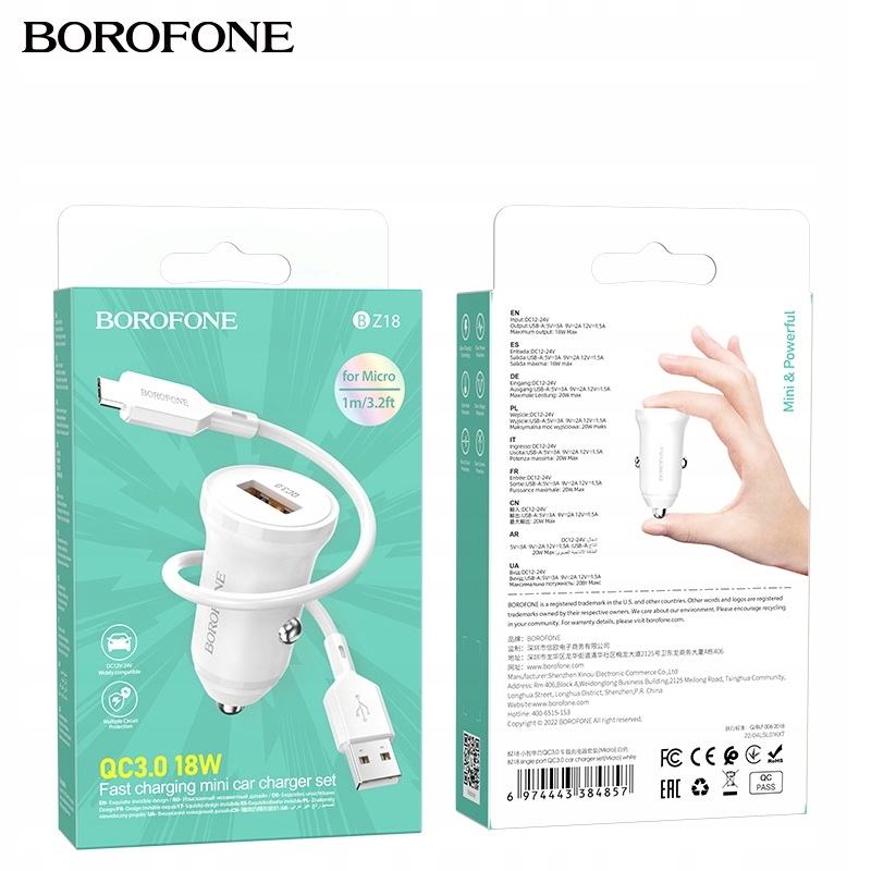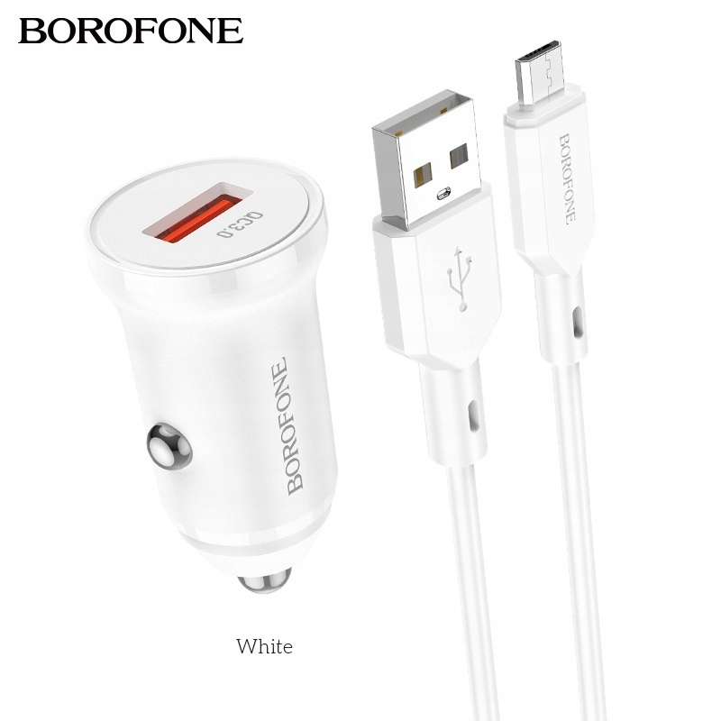 BOROFONE BZ18 - це автомобільний зарядний пристрій з одним портом USB, вихідна потужність від 1,5 А до 3 А, стандарт Quick Charge 3.0 / QC3.0. Мінімалістичний дизайн, широкий діапазон напруги і широкі можливості зарядки різних мобільних пристроїв - його головні і незаперечні переваги. Крім того, у набір входить кабель із роз’ємом micro USB довжиною 1 М і максимальною напругою 2,4 А.