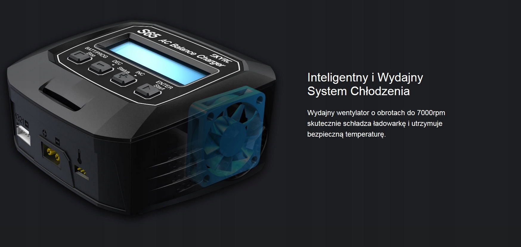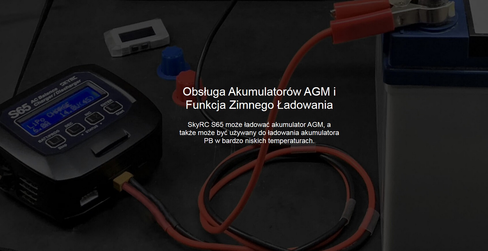 Skyrc S65 -це високоефективна, контрольована заряджена мікропроцесор / розряд з балансиром, ідеально підходить для ліпо, Лілона, життя, NICD, NIMH, PB та LIHV New Generation з кінцевим напруженням 4,35 В. Це зарядний пристрій / розряд з побудованим джерелом живлення. Максимальна потужність зарядки S65 - 65 Вт. Максимальний струм зарядки становить 6а, струм розряду 2А.