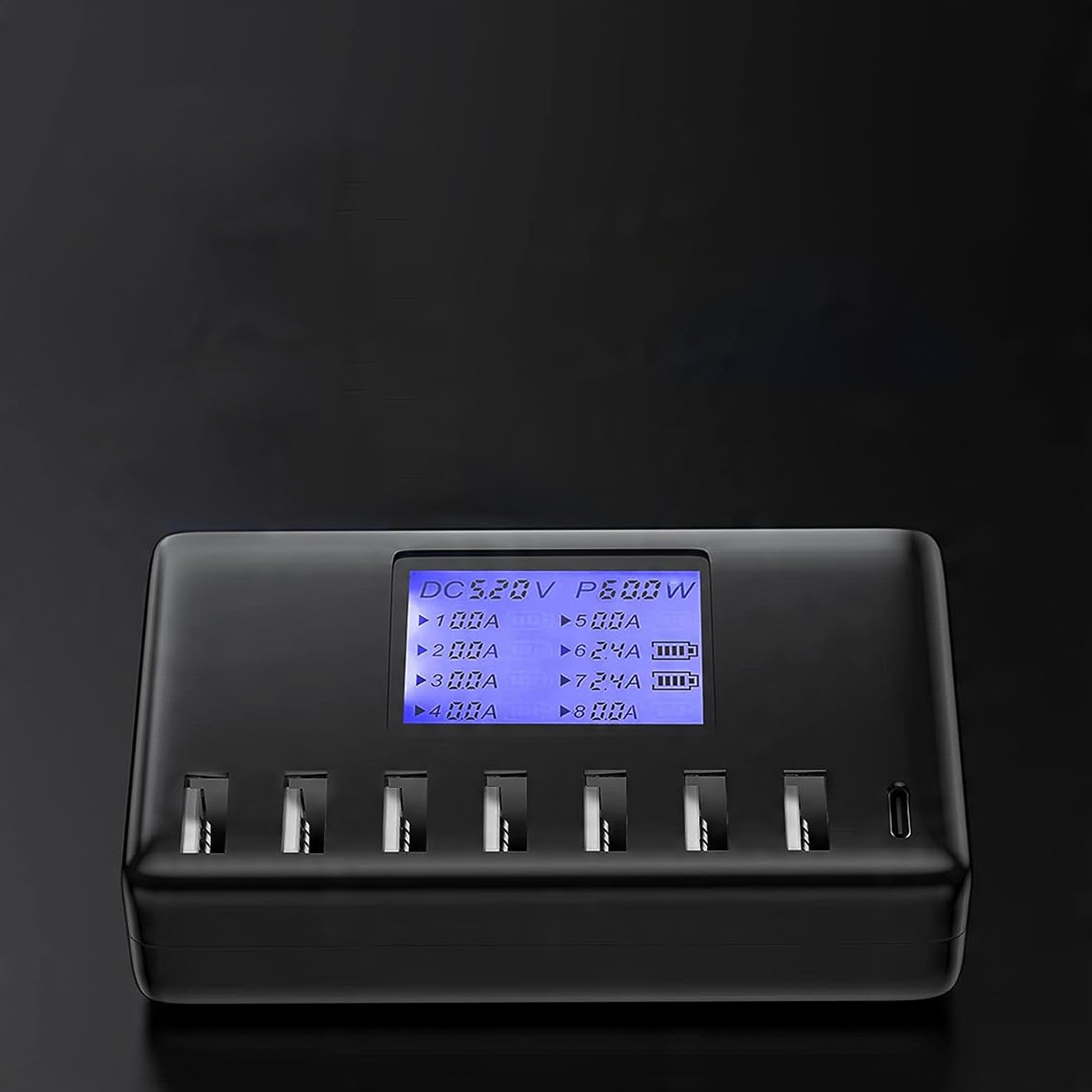 ЗАРЯДНИЙ ПРИСТРІЙ USB 8-ПОРТОВА ЗАРЯДНА СТАНЦІЯ З РК-ДИСПЛЕЄМ ПОРТАТИВНА 60W