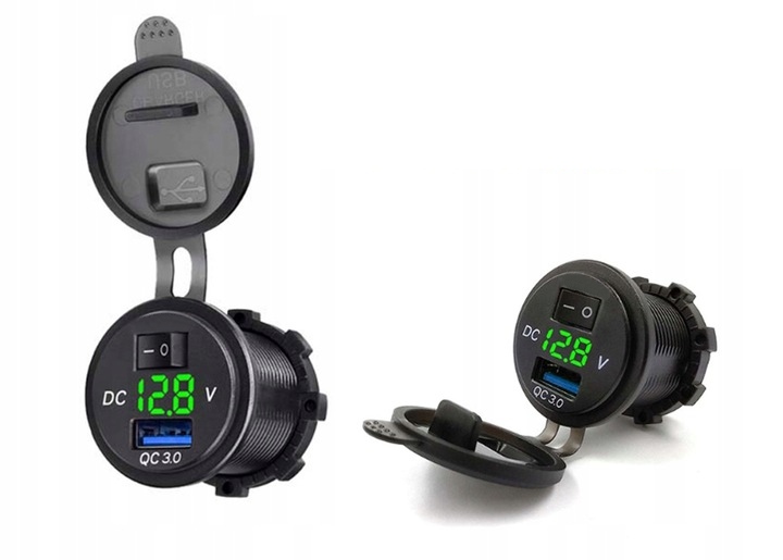 - Зарядний пристрій 1x USB QC3.0 + кришка + вольтметр + кнопка ON/OFF