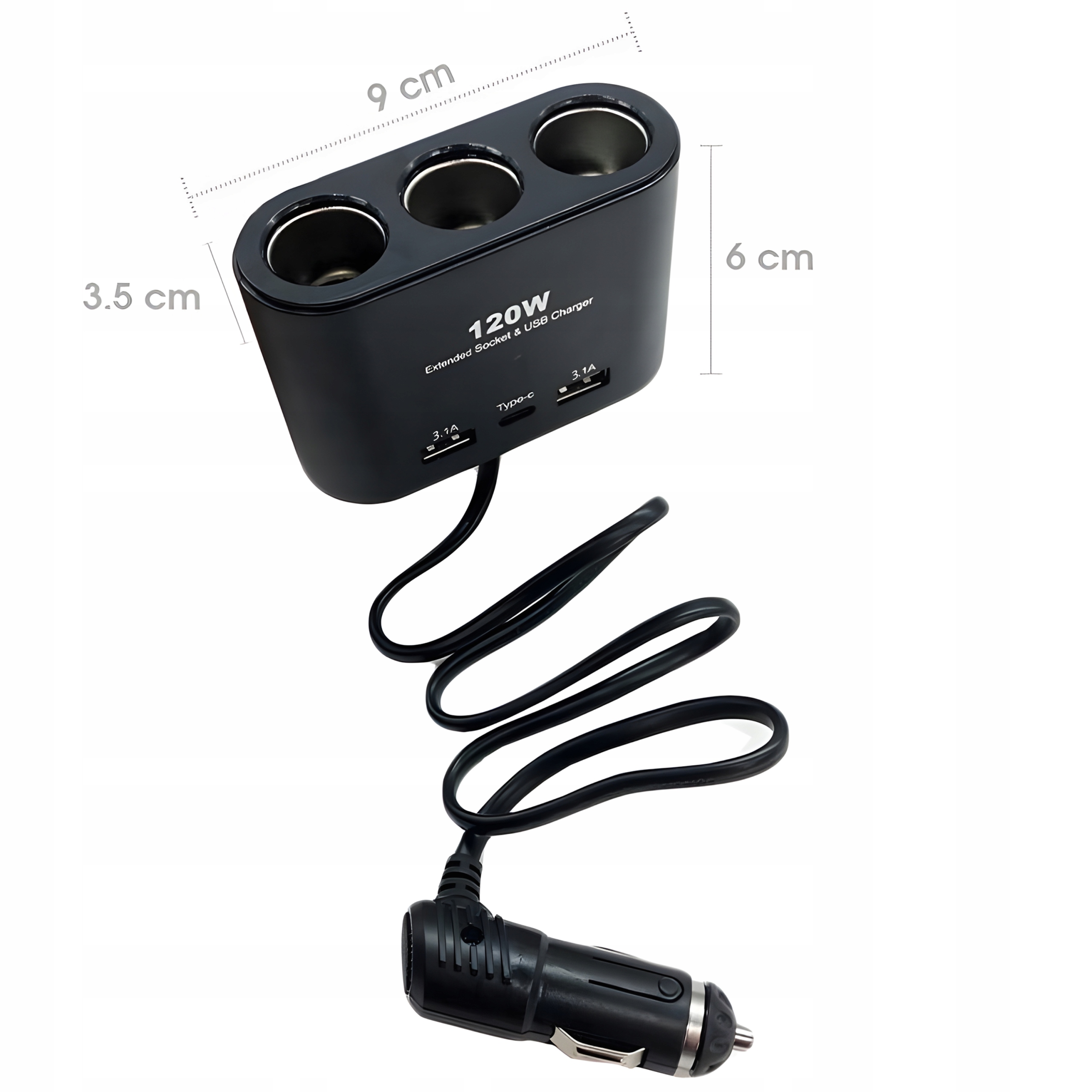☝️3 гнізда для прикурювача: Дозволяє підключати три пристрої з прикурювачем одночасно, що підвищує зручність використання.
