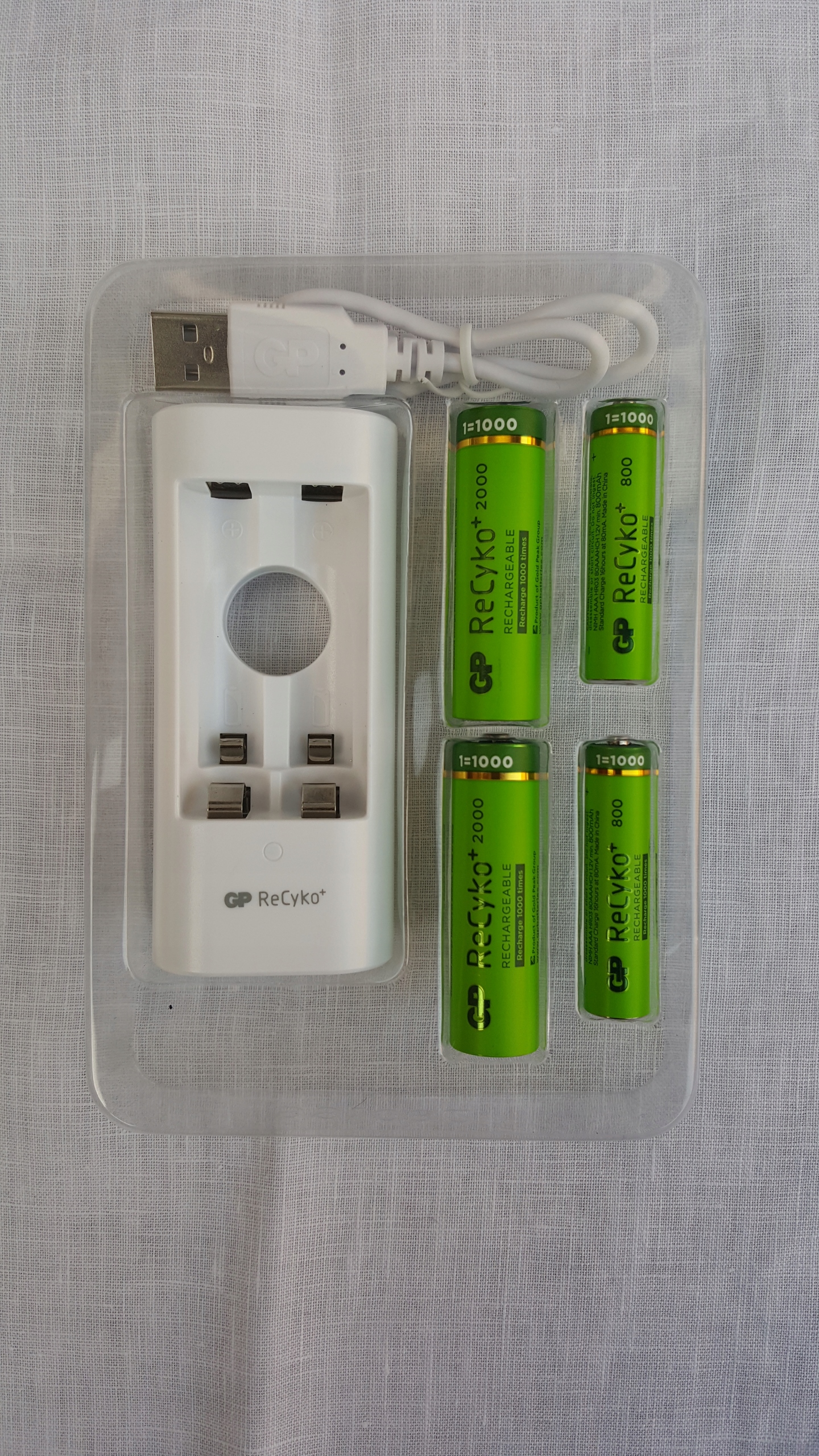 ЗАРЯДНИЙ ПРИСТРІЙ USB GP ReCyko+ із 4 акумуляторами, які можна заряджати до 1000 разів кожну