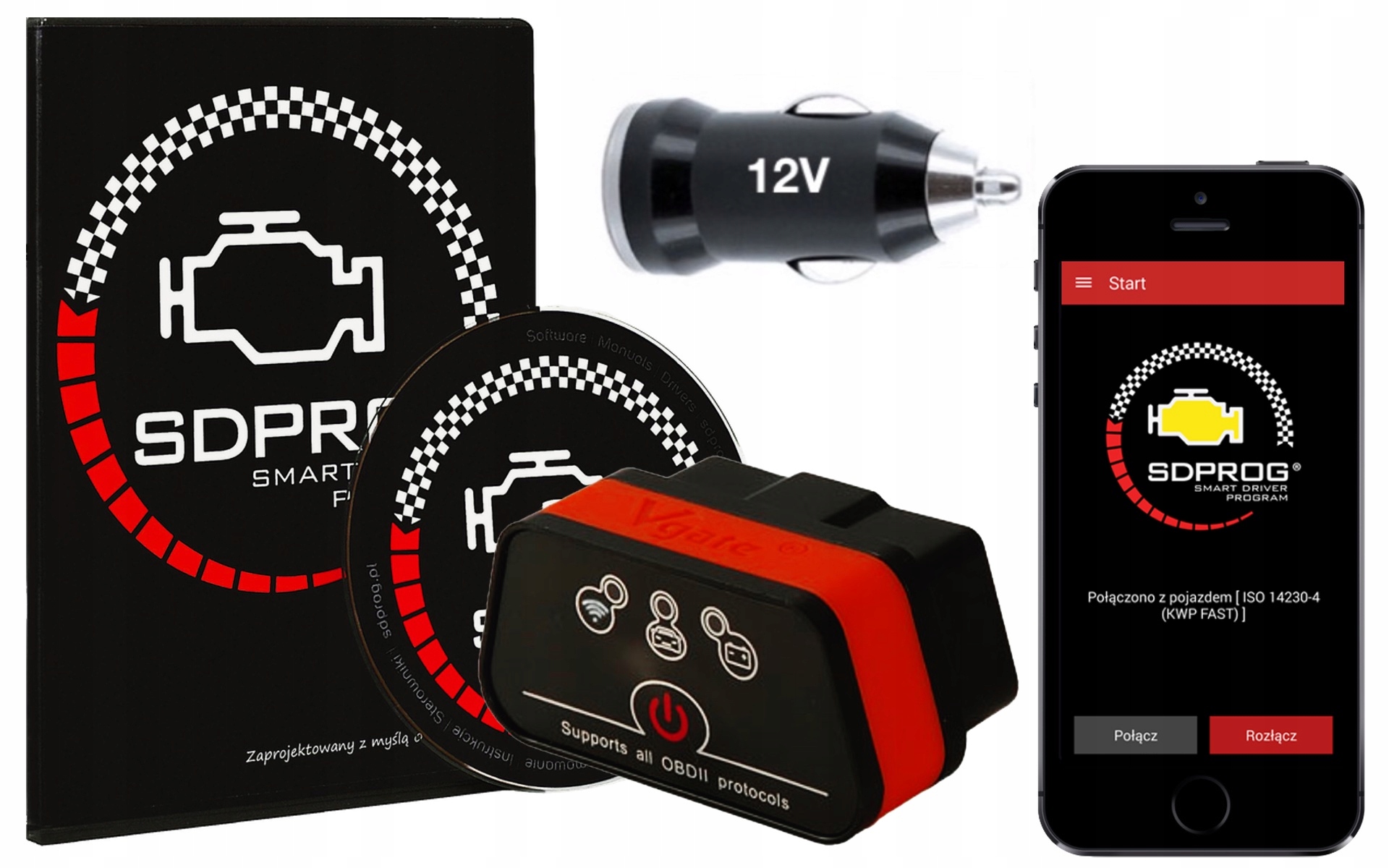 Інтерфейс iCar2 WIFI + програма SDPROG PL (BOX) + безкоштовний автомобільний зарядний пристрій 12 В