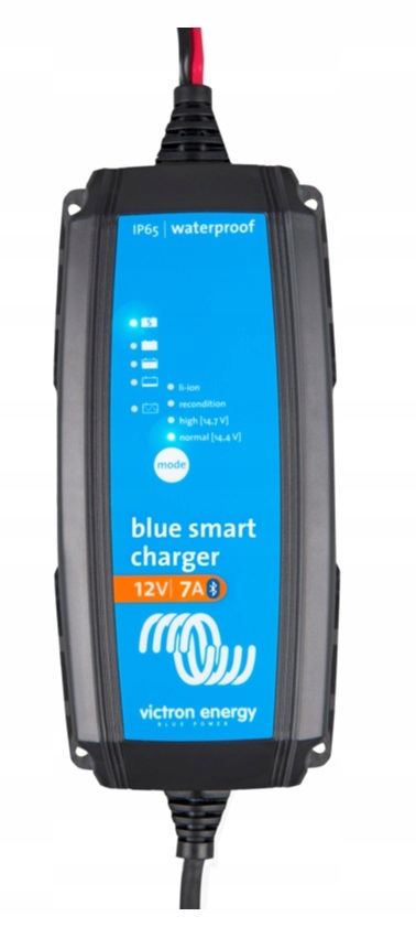VICTRON Blue Smart IP65 12V 7A — професійний автоматичний зарядний пристрій, призначений для зарядки акумуляторів 12V із вбудованим модулем Bluetooth. Його можна використовувати не тільки для автомобілів, але і для обладнання для майстерень, човнів, кемперів, мотоциклів і «класики». Його можна використовувати для зарядки як класичних свинцево-кислотних акумуляторів, так і їх покращених версій EFB, AGM і гелевих акумуляторів, а також літій-іонних і LiFePO4 акумуляторів.