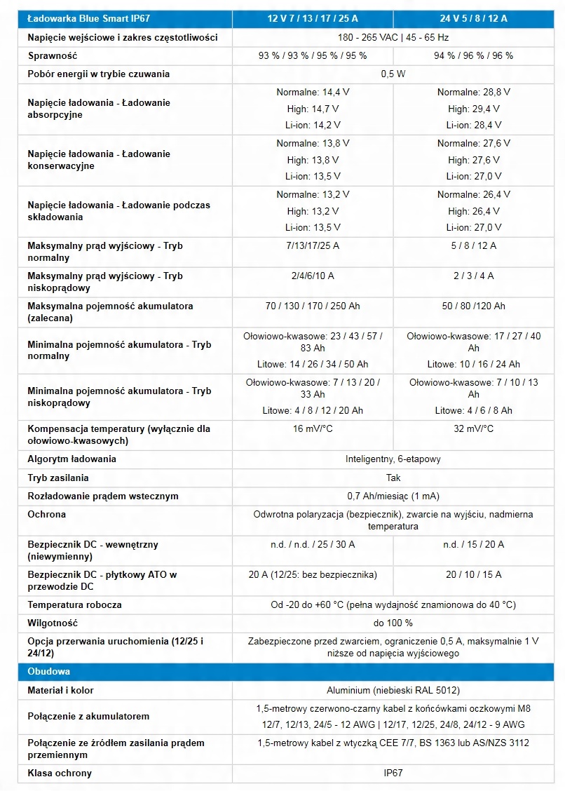 Зарядний пристрій Victron Blue Smart є безпечним рішенням не лише для людей, а й для всіх можливих транспортних засобів. Це дуже розумний і сучасний пристрій. Легко встановлюється, під час роботи не виникає іскріння, коротких замикань і перевантажень. Крім того, він стійкий до зворотної полярності та шкідливого впливу води, пилу та зміни температури. Регулювання параметрів зарядки робить процес заряджання окремих акумуляторів відносно простим. Їхня конструкція була створена таким чином, щоб не пошкодити електронні та електричні компоненти в транспортних засобах.