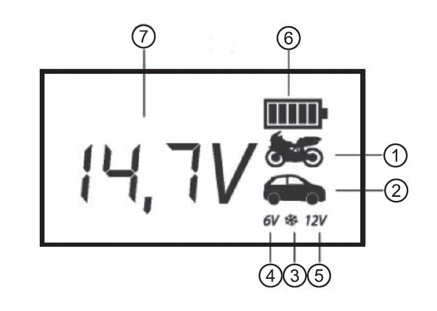 - ПАМ'ЯТЬ ВИБІРУ РЕЖИМУ РОБОТИ ФУНКЦІЇ - Мікропроцесор всередині зарядного пристрою оснащений функцією пам'яті налаштувань, що означає, що зарядний пристрій вибере останні використовувані параметри зарядки акумулятора. Завдяки цьому користувачеві не доведеться турбуватися про те, які налаштування він використовував востаннє, а також скорочується час, необхідний для підготовки випрямляча до роботи