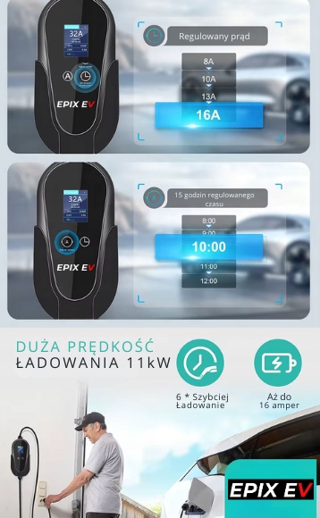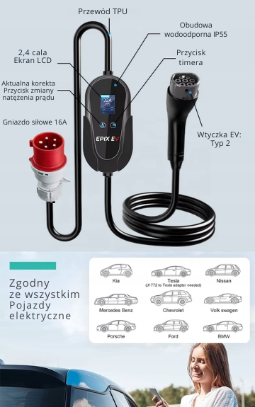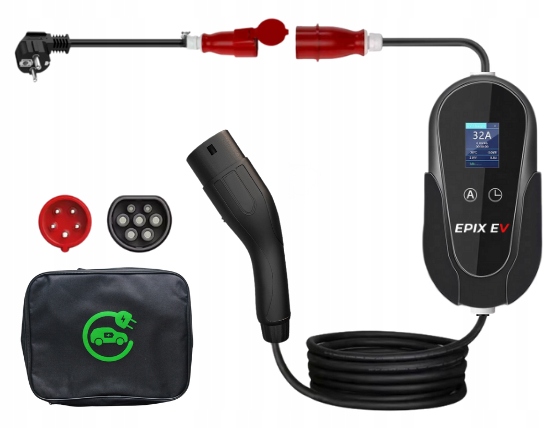 Портативний автомобільний зарядний пристрій Epix EV 16 A (так звана low power), можливе придбання з вилкою 32 A (так звана high power), будь ласка, повідомте нам у коментарі до замовлення.