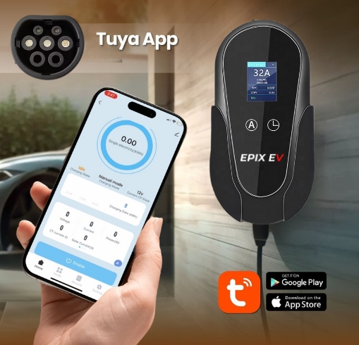 Зарядний пристрій оснащений функцією бездротового підключення за допомогою популярного і зрозумілого додатку Tuya польською мовою.